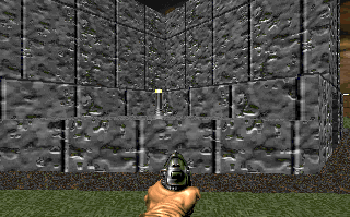 Single-patch, 128X128 wall texture. Large building blocks carved from black volcanic rock.